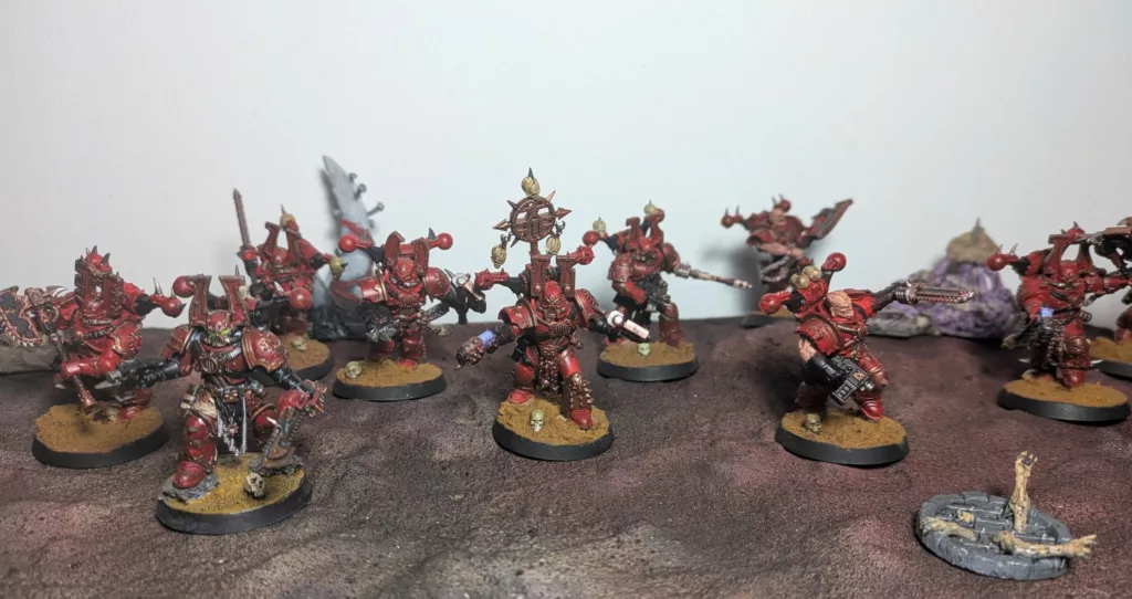 This week I finished a unit of Khorne Berzerkers from Warhammer 40K, with a few pieces of terrain from Loot Studios. All pictures here.