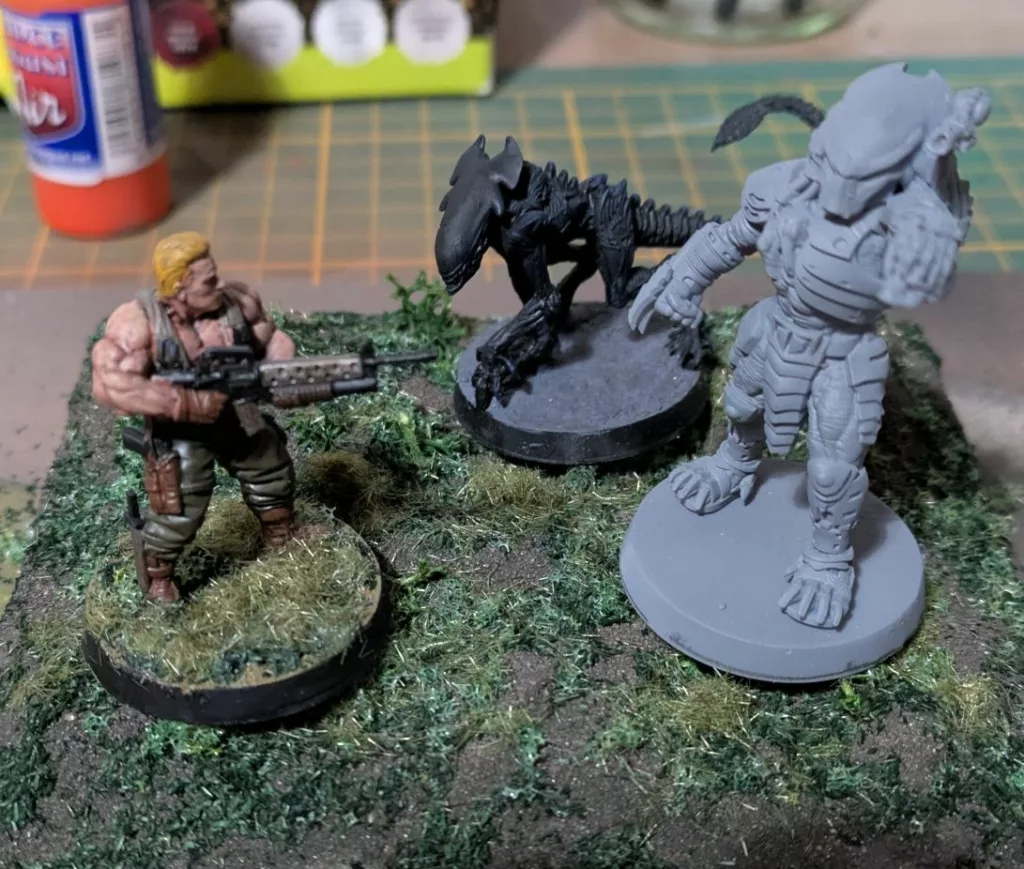 Arnold (done!), a Xeno (done!), on a terrain (mostly done but still missing critical features), and a Predator (to do…):